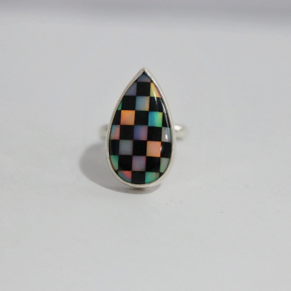 Teardrop Mosaic Ring in Sterling Silver / Ready to Ship Size 9