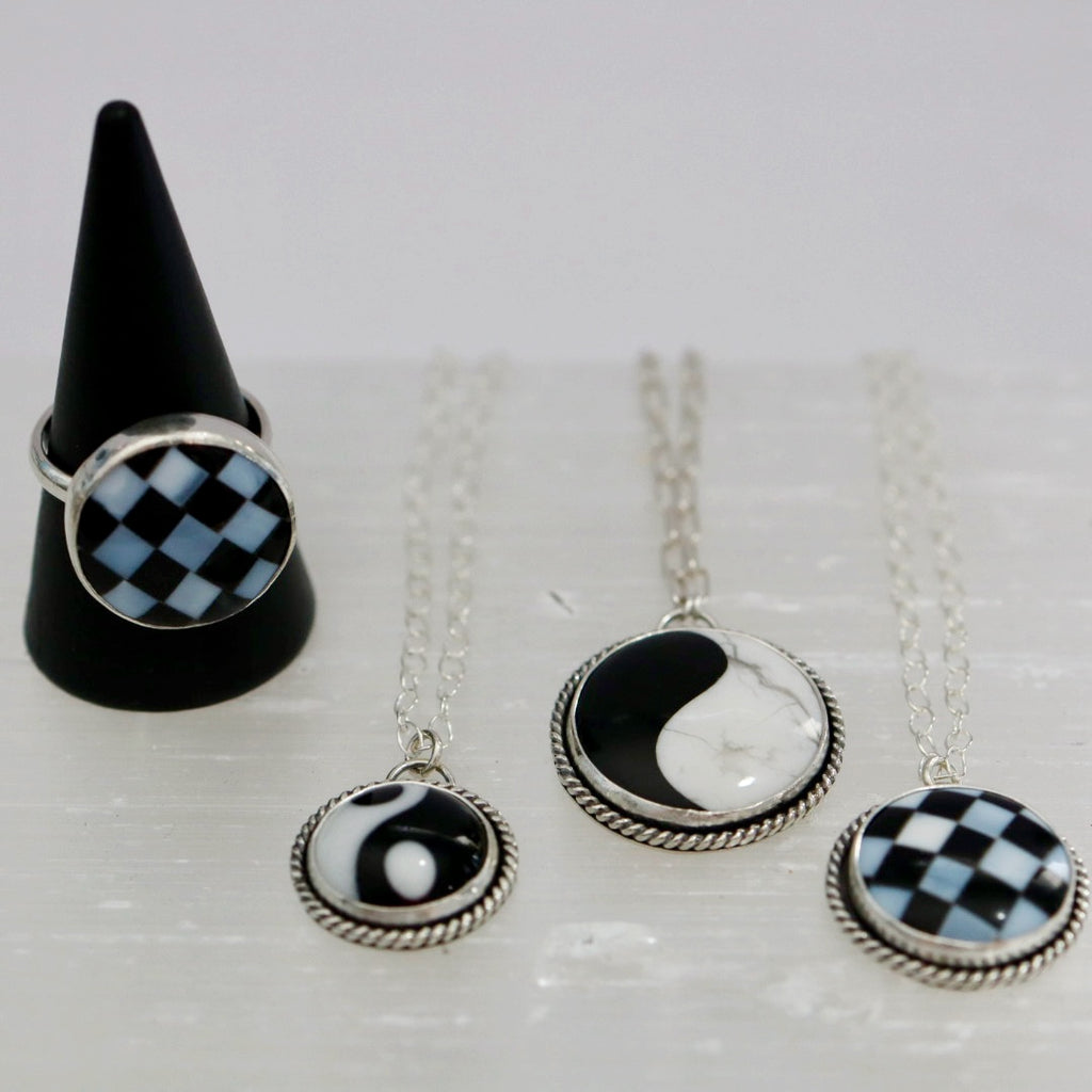 Black and White Peace Sign Ring in Sterling Silver