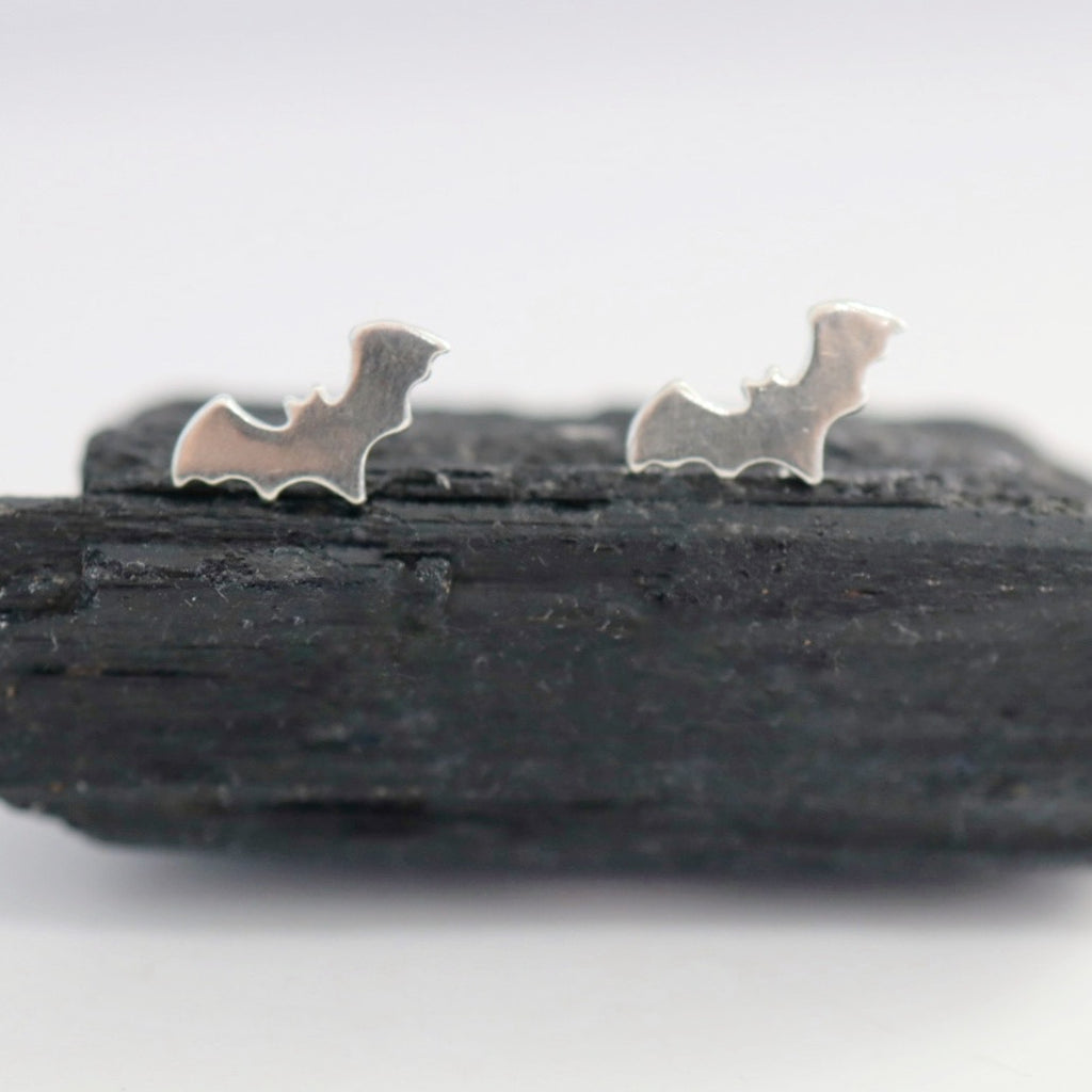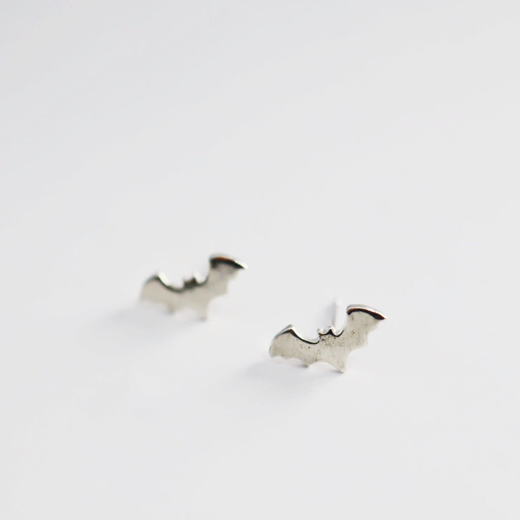 Bat Stud Earrings in Sterling Silver; Halloween Spooky Earrings