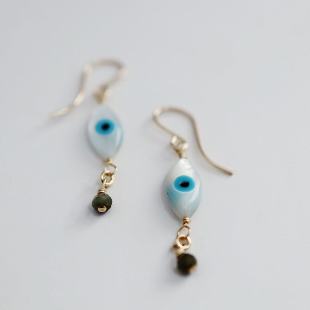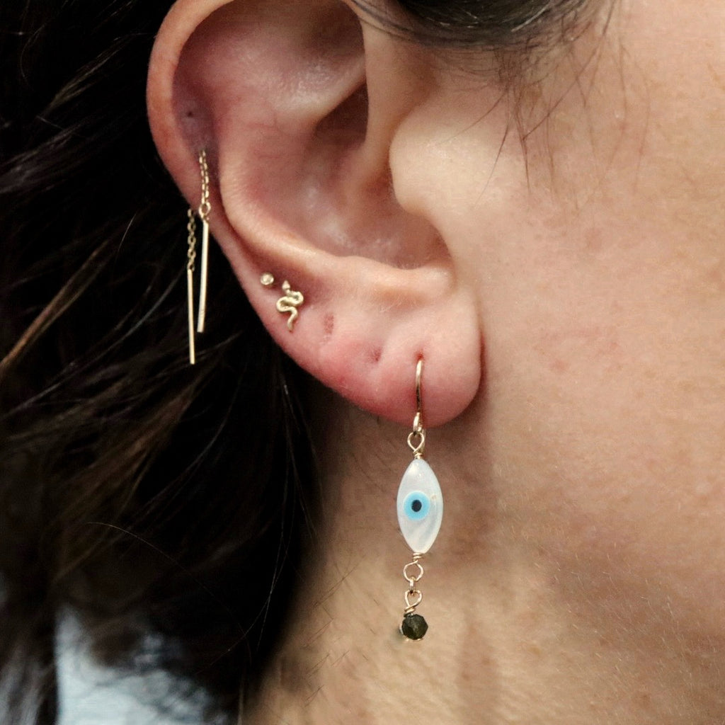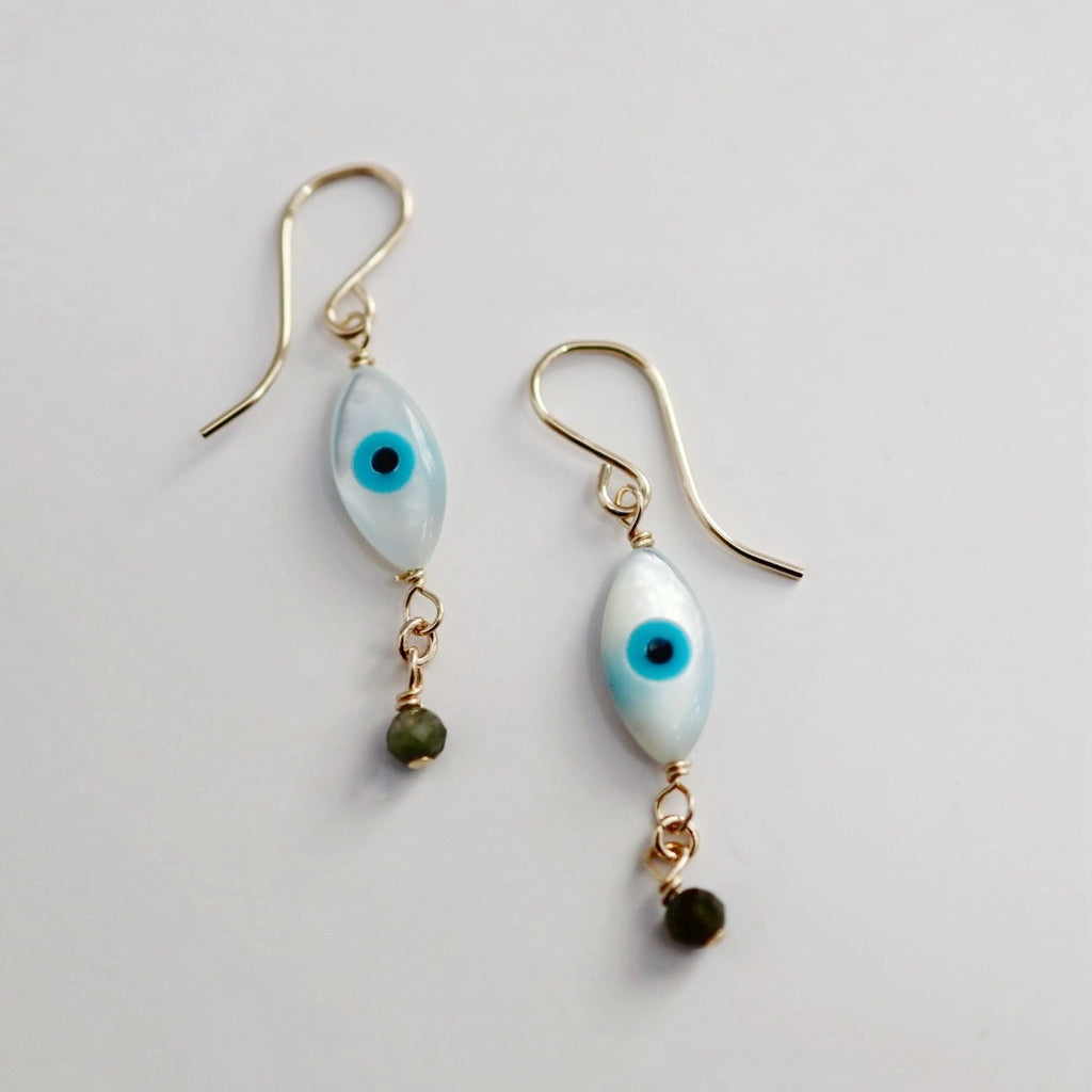 All seeing eye and Green Tourmaline Earrings in 14 Karat Gold Fill / READY TO SHIP