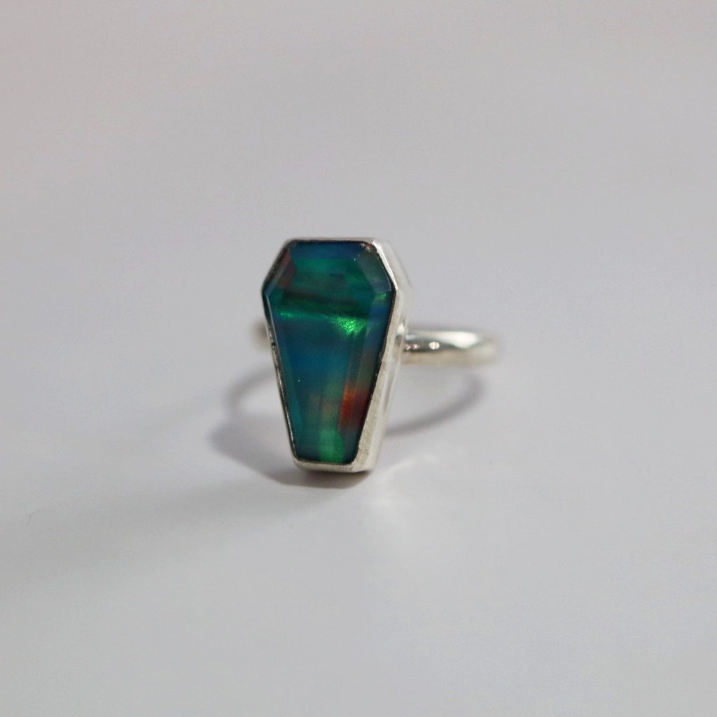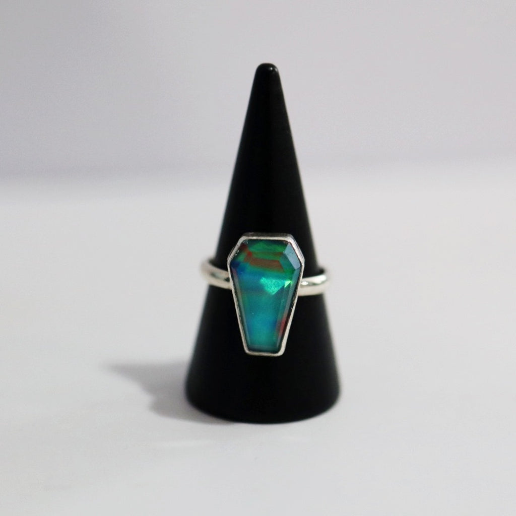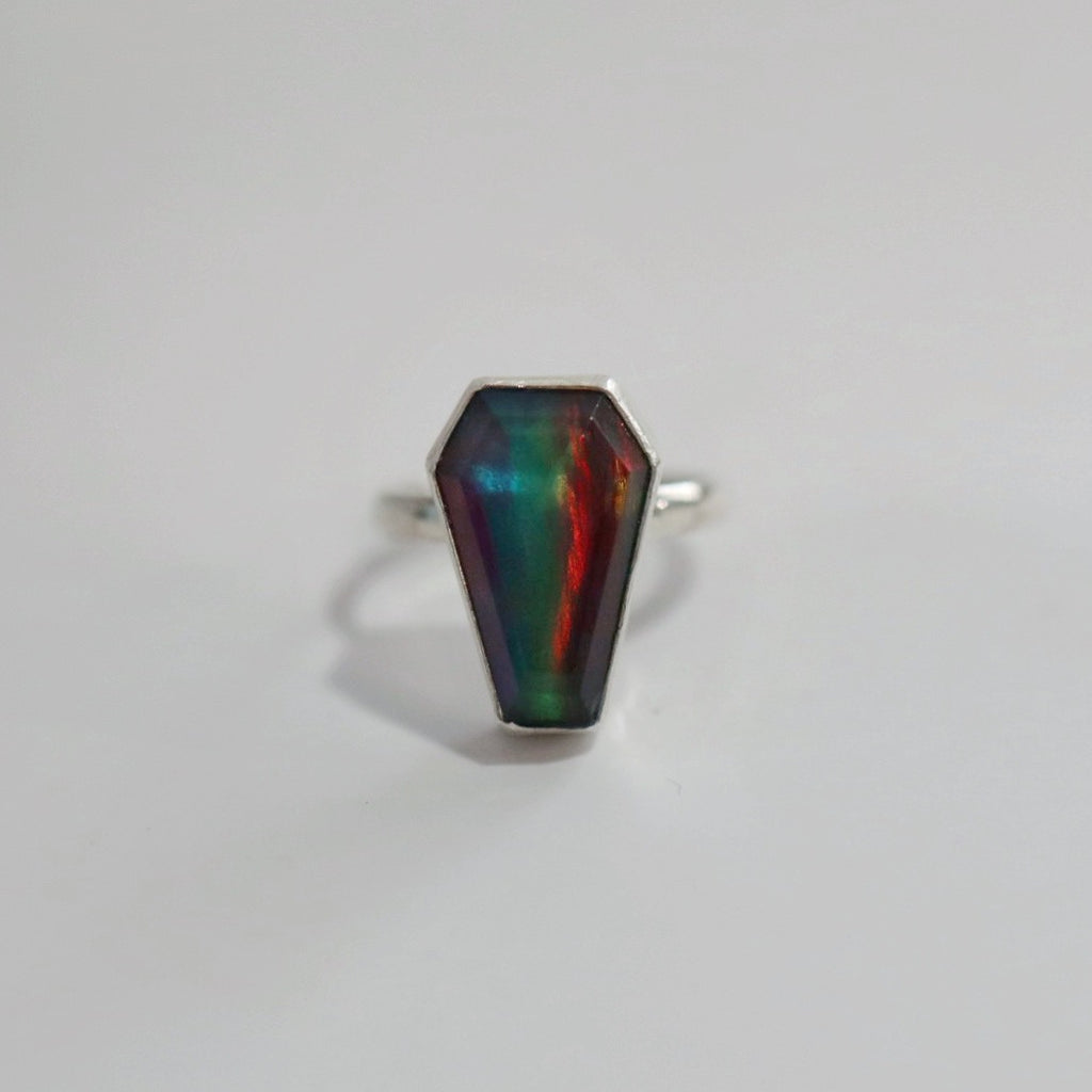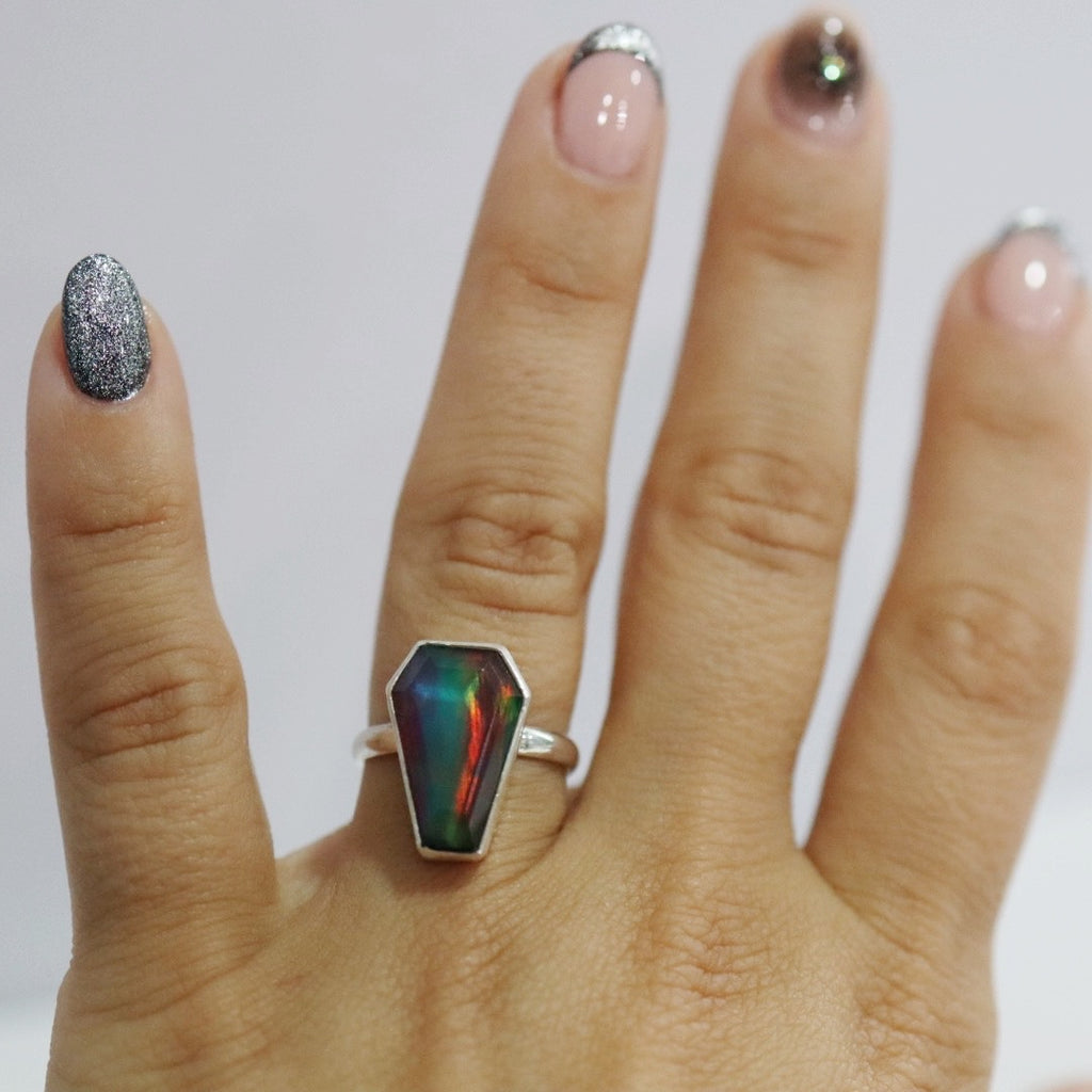 Aurora Opal Coffin Gemstone Ring in Sterling Silver / size 6.5 READY TO SHIP