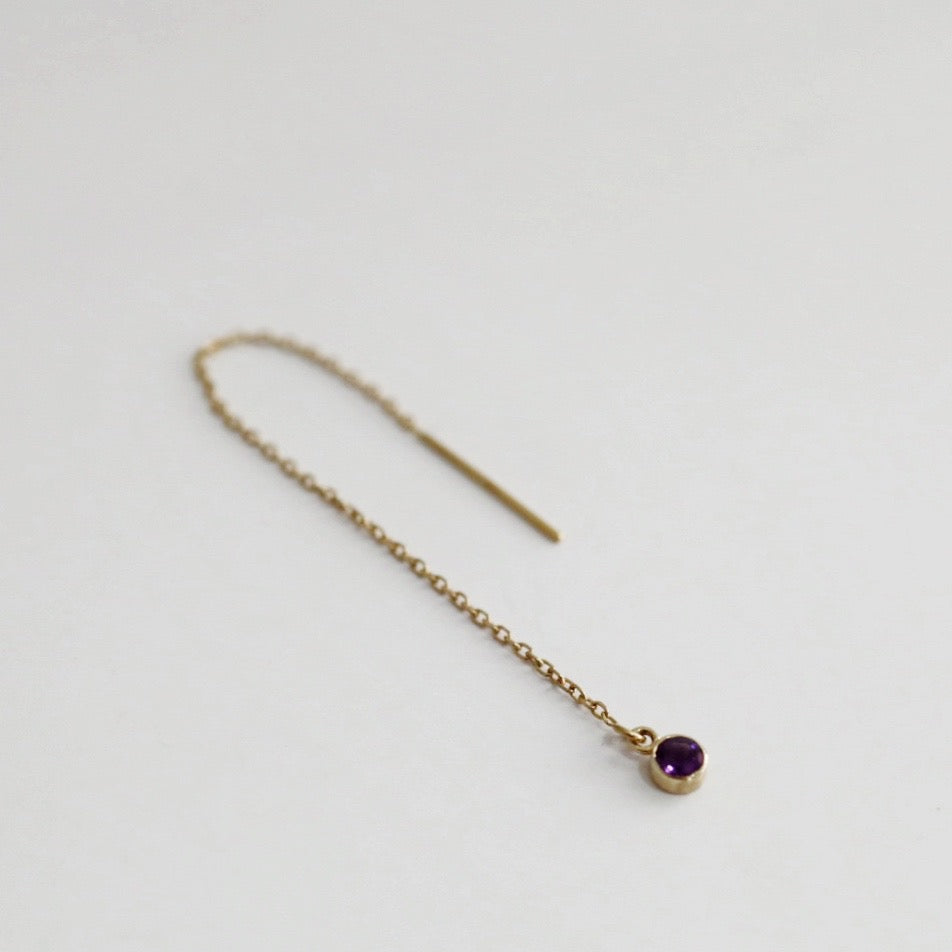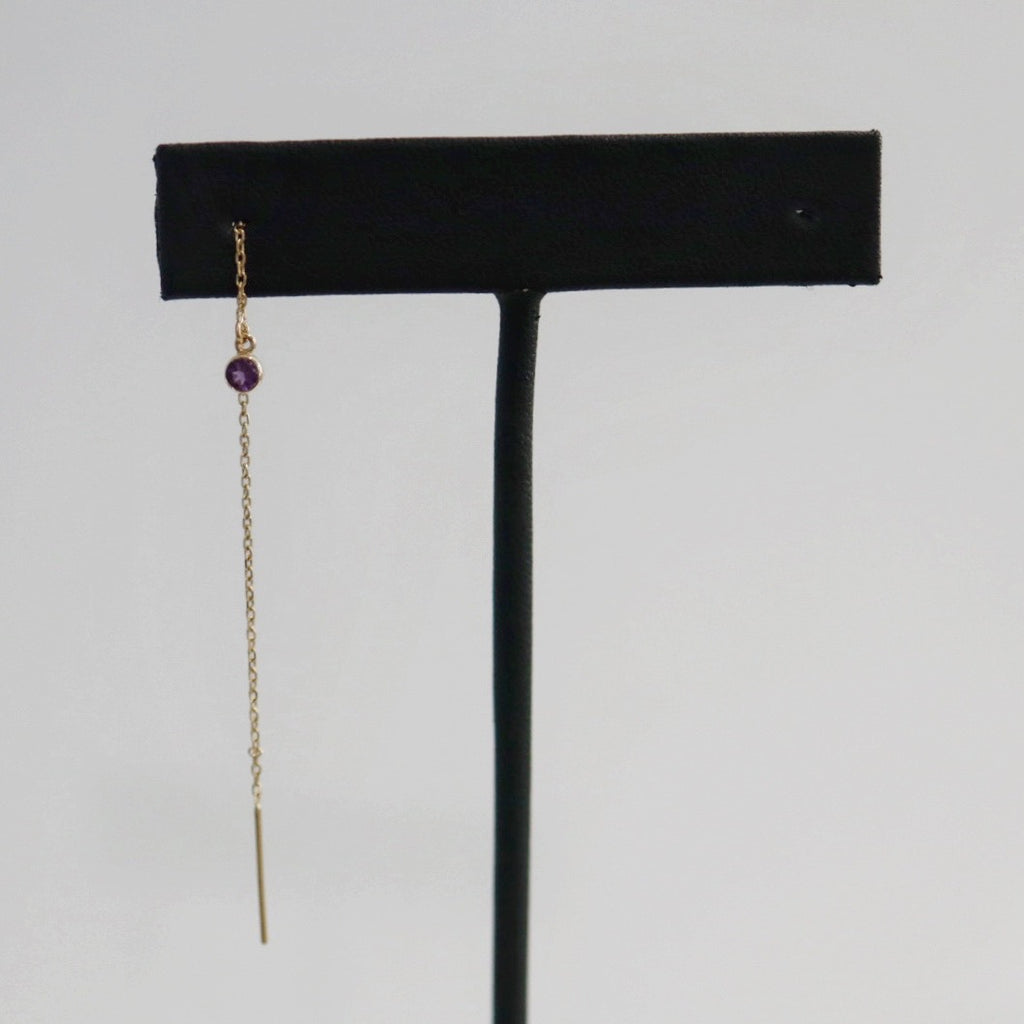 Amethyst Gemstone Threader Earring in 14 karat Yellow Gold / SINGLE EARRING / READY TO SHIP