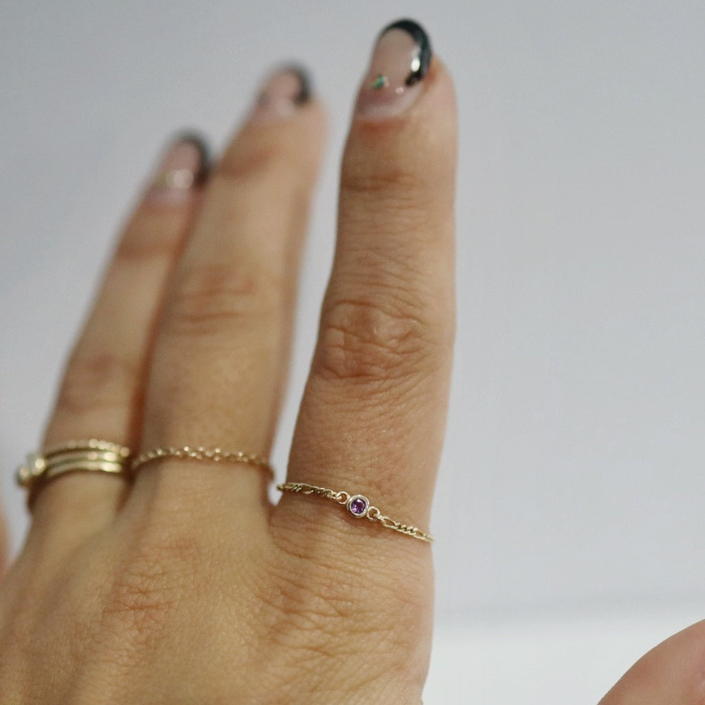 Amethyst and chain ring in 14 Karat Yellow Gold / Ready to Ship size 10.5 (can be made smaller)