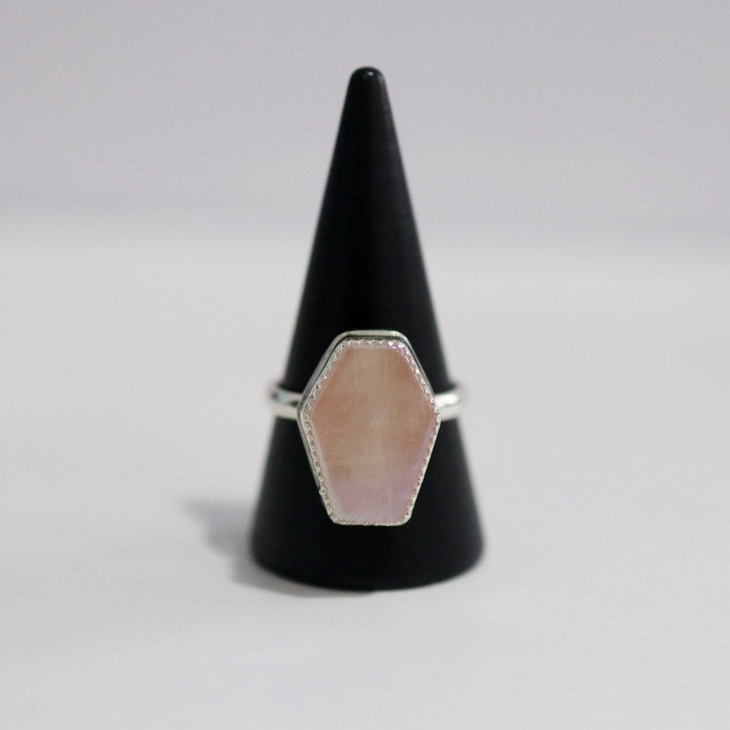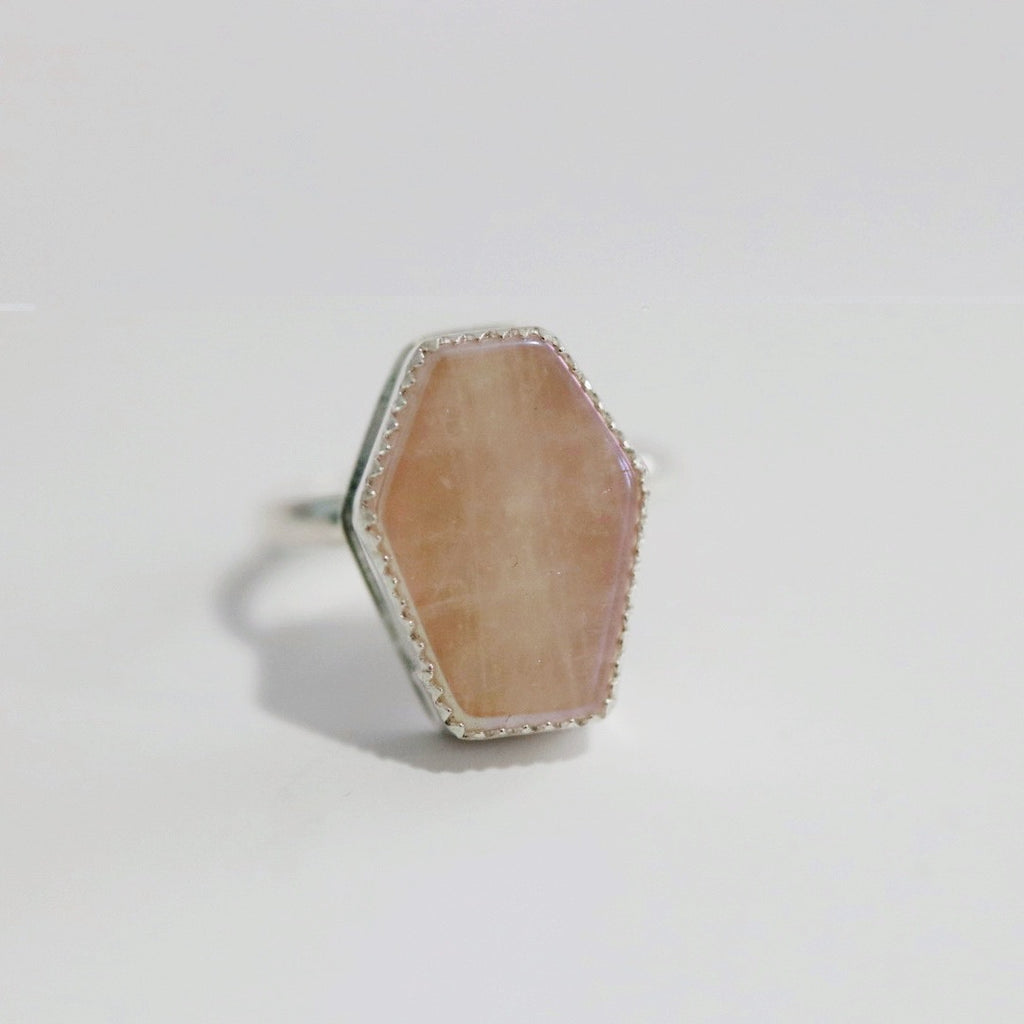 Rose Quartz Gemstone Coffin Ring in Sterling Silver