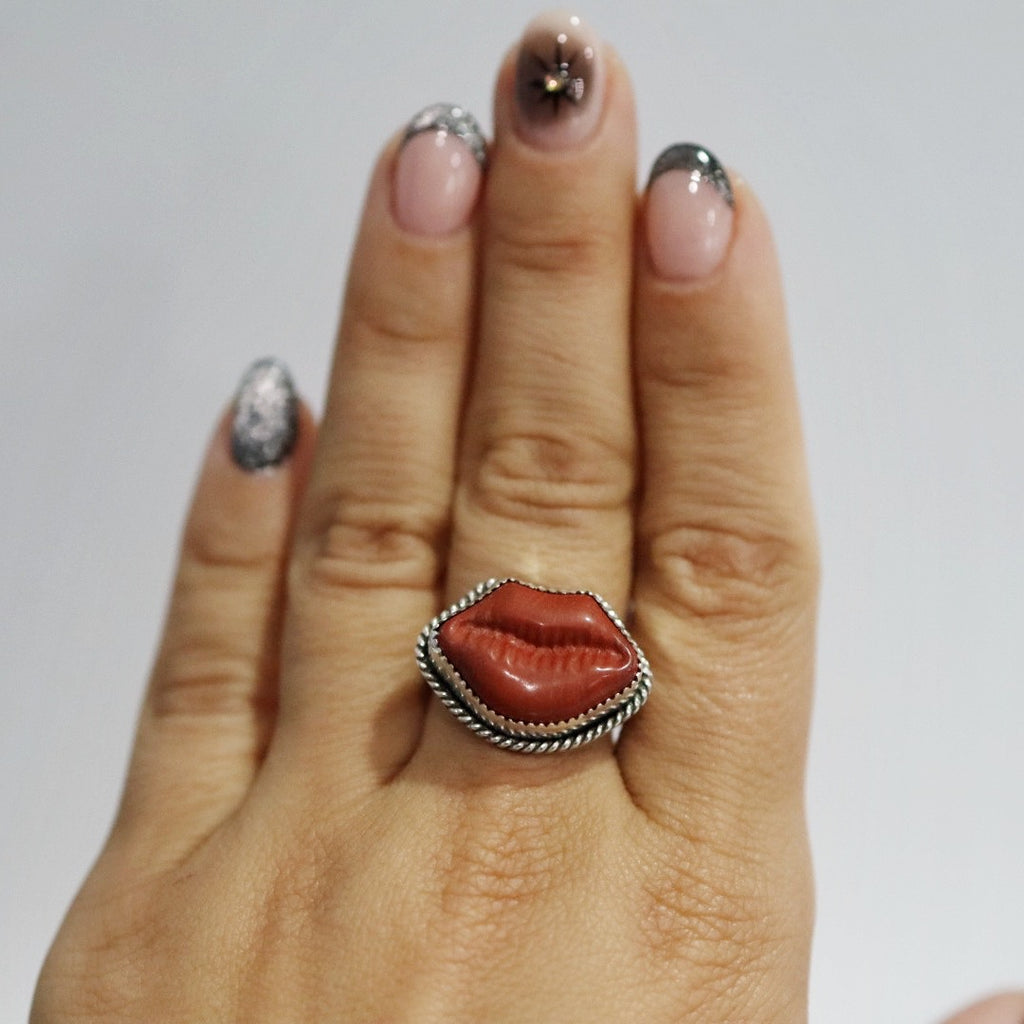 Sealed With a Kiss Ring in Sterling Silver / Red Jasper / Size 9 ready to ship