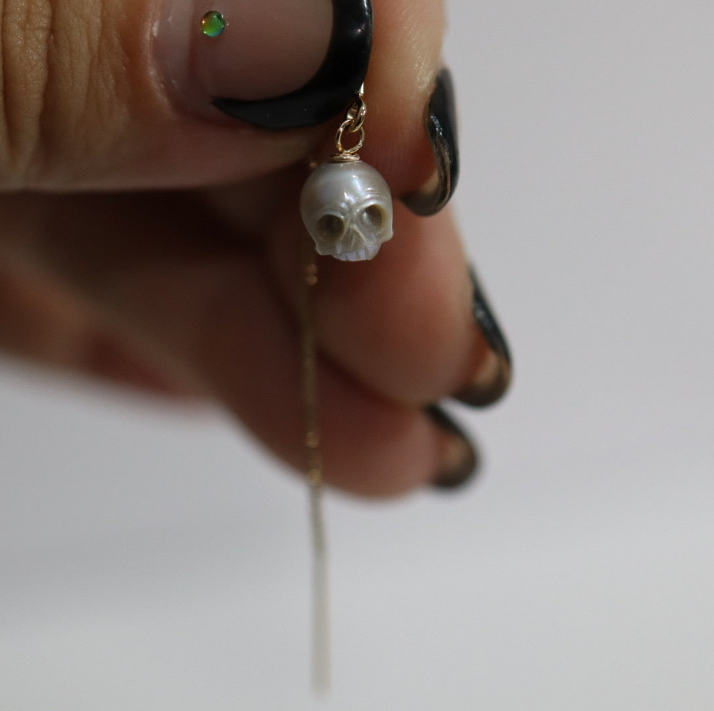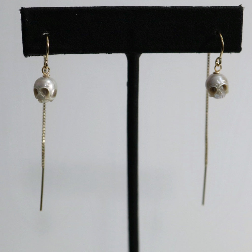Skull Pearl Threader Earrings in Gold Fill / Ready to ship