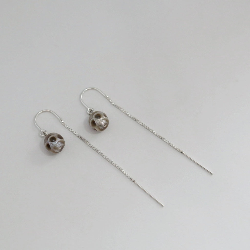 Skull Pearl Threader Earrings in Sterling Silver / Ready to ship