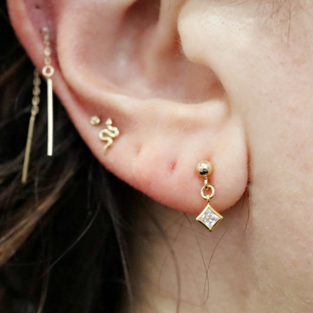 Stud and Diamond Drop Dangle Earrings in 14 karat Gold Fill / ready to ship