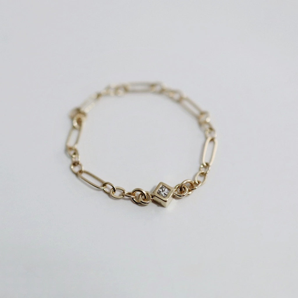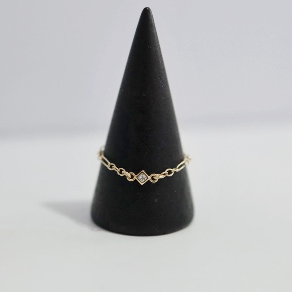 Lab Diamond and Long and Short Chain ring in 14 Karat Yellow Gold / READY TO SHIP size 9