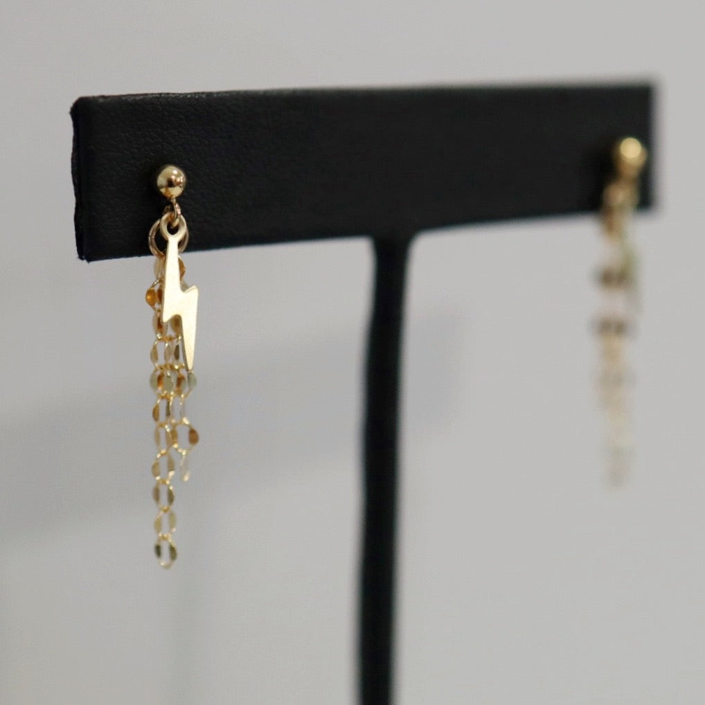 Lightning Bolt and Chain Dangle Earrings in 14 karat Gold Fill / ready to ship