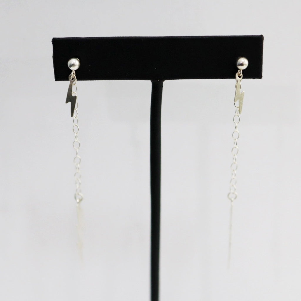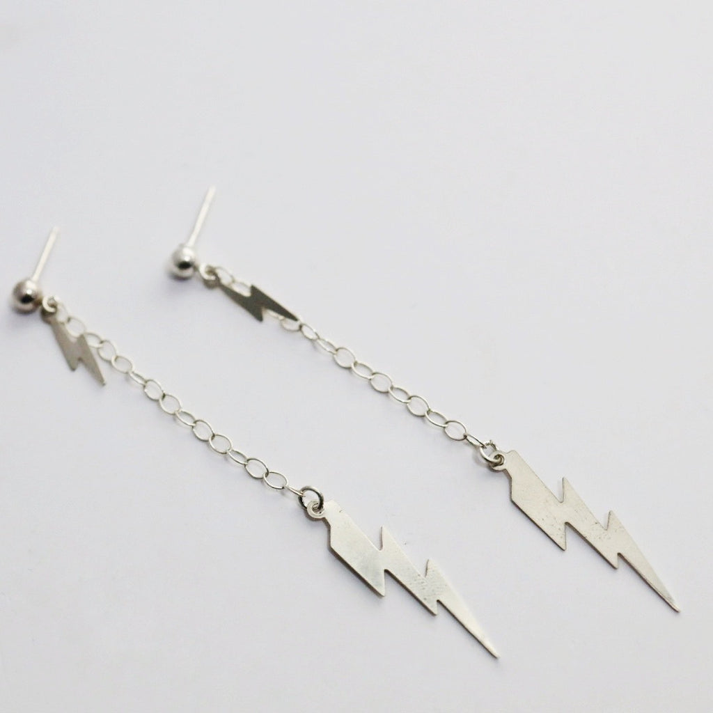 Double Lightning Bolt Stud Drop Earrings in Sterling Silver / Ready to ship