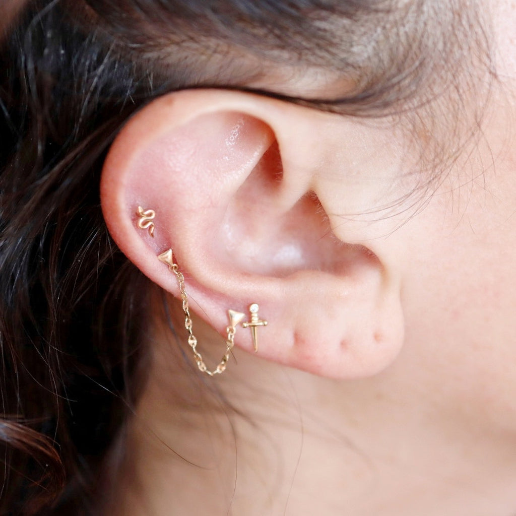 Tiny Snake Stud Earring in 14K yellow gold / SINGLE EARRING / ready to ship