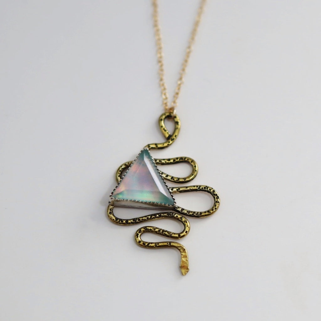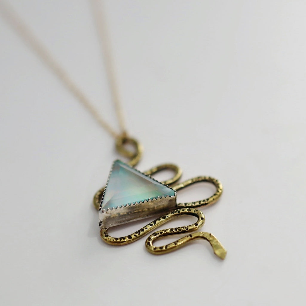 Brass Snake and Gemstone Triangle Necklace / Ready to ship