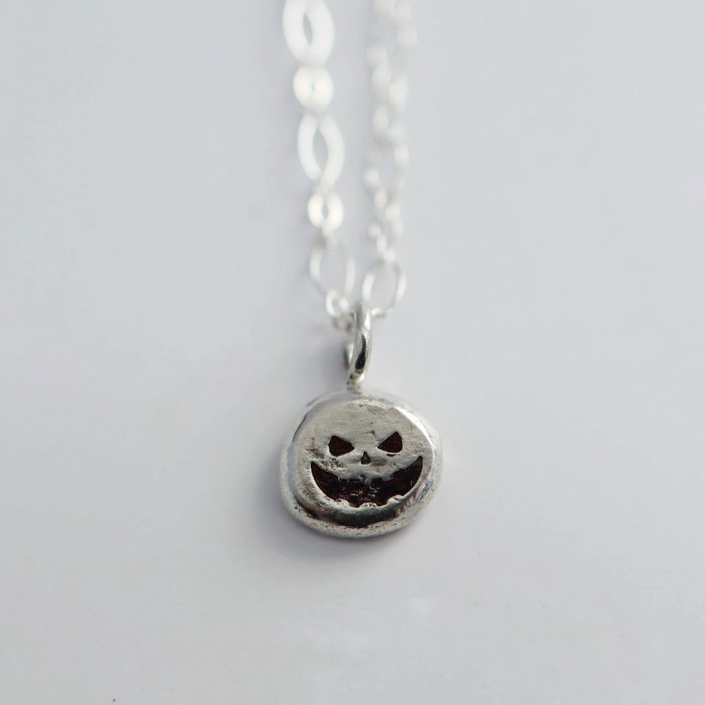 Scary Pumpkin Sterling Silver Necklace / Ready to Ship