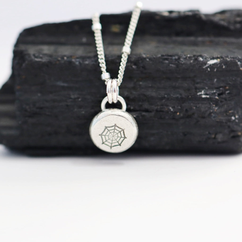 Spider Web Stamped Sterling Silver Necklace / Ready to Ship