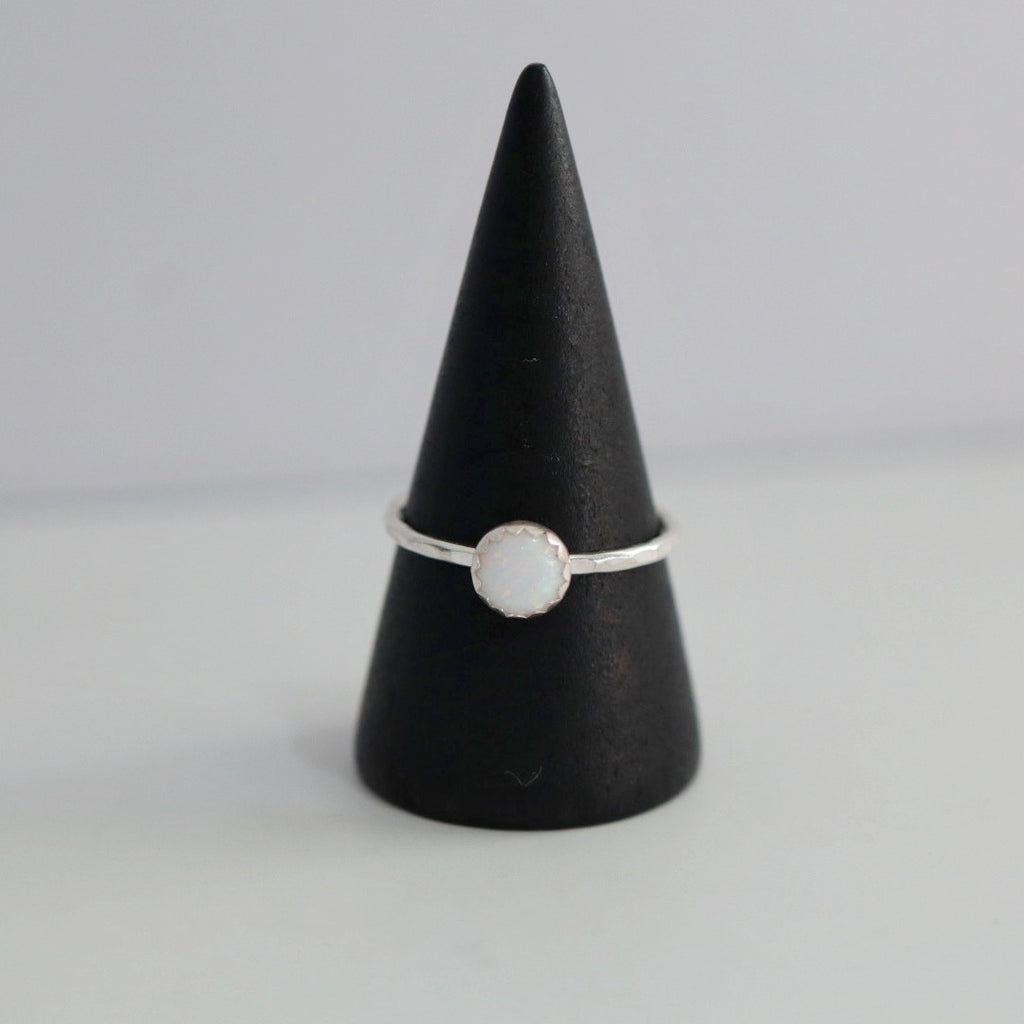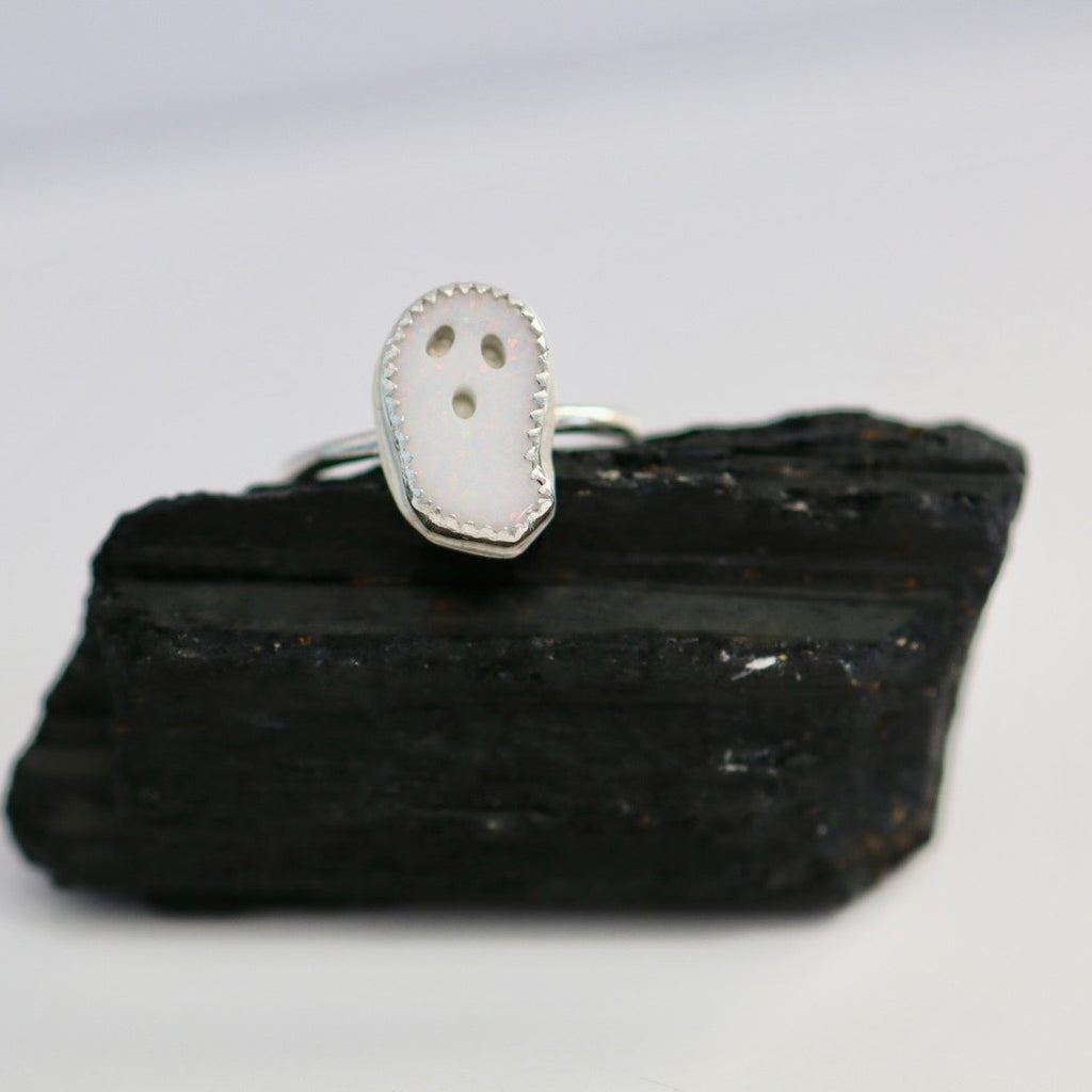 Aurora Opal Coffin Gemstone Ring in Sterling Silver / size 6.5 READY TO SHIP