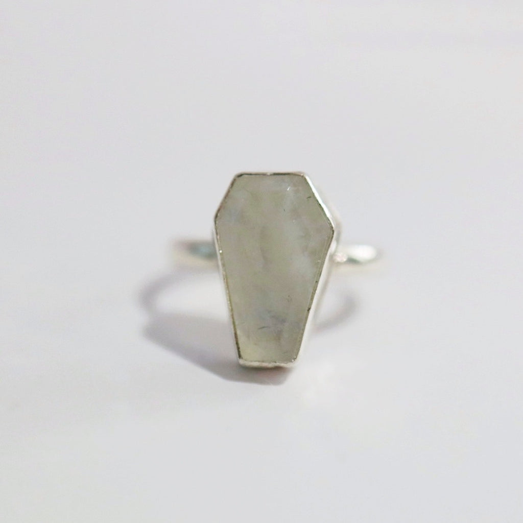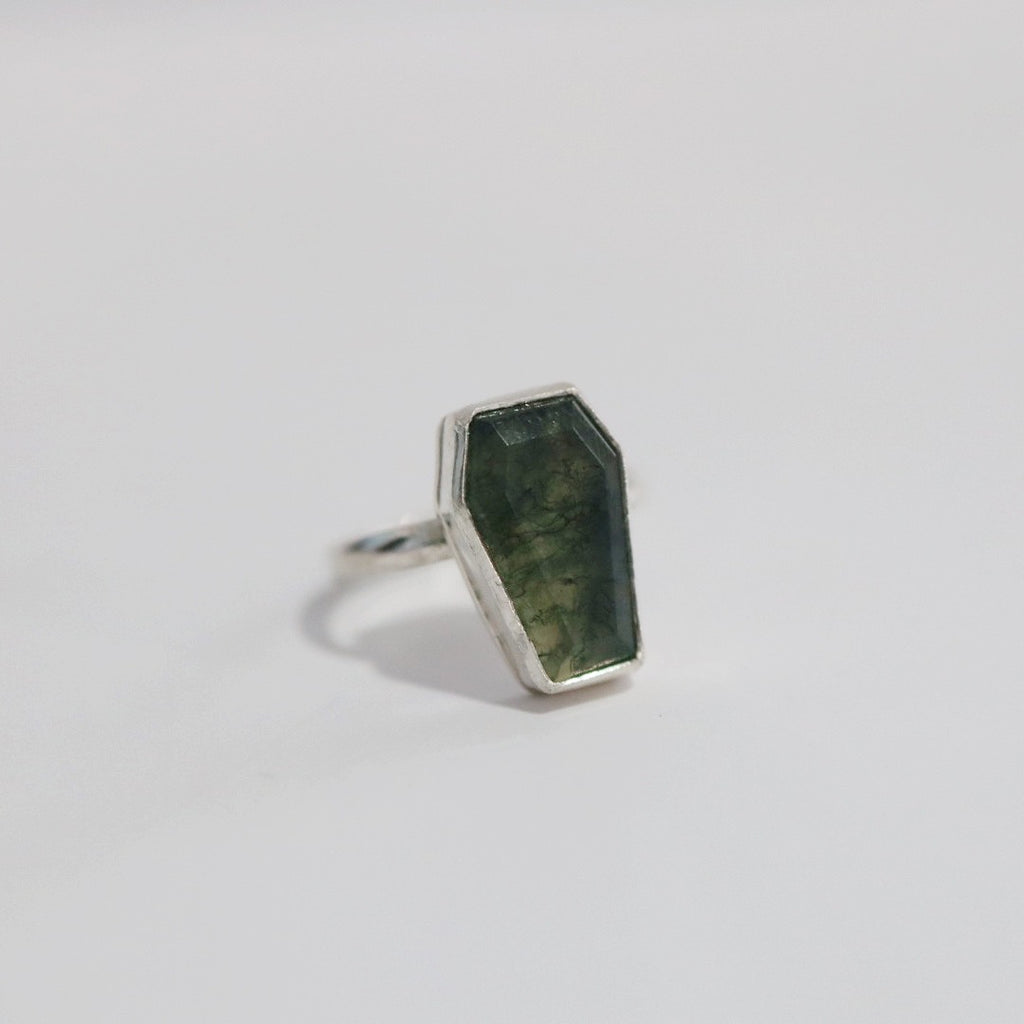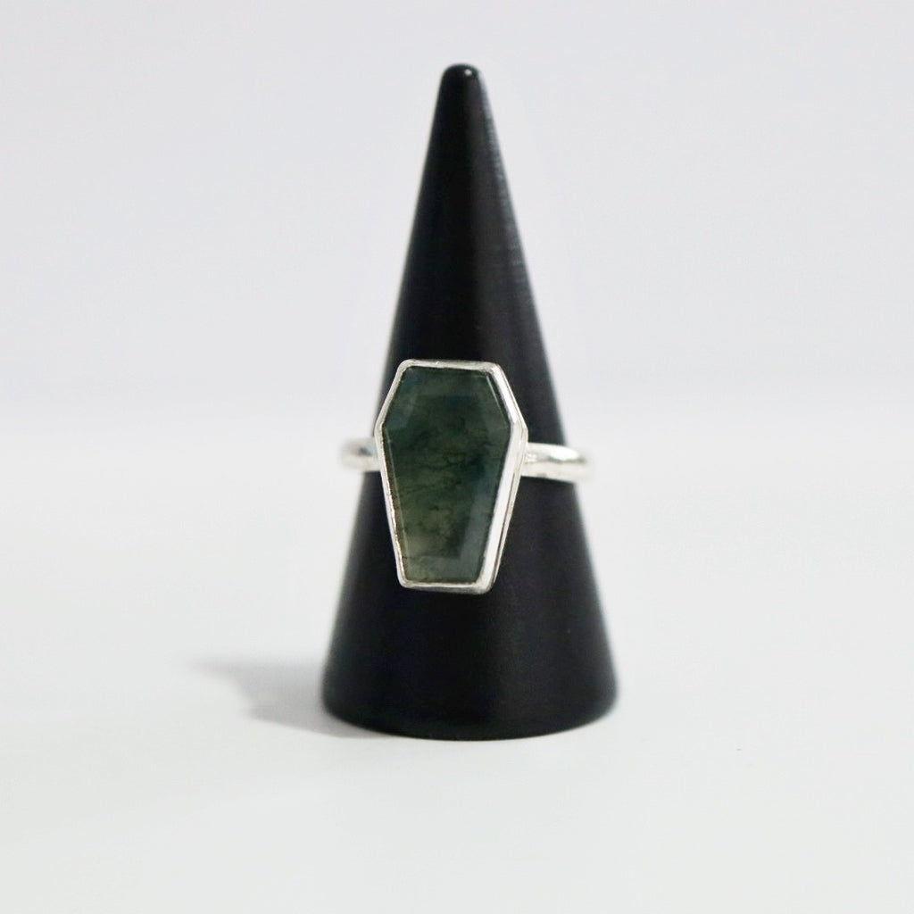 Coffin Gemstone Ring in Moss Agate and Sterling Silver / size 7.5 READY TO SHIP
