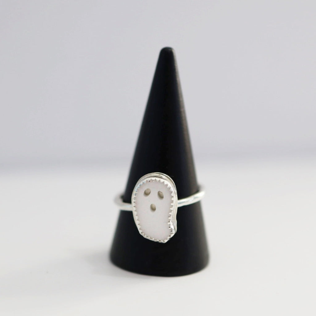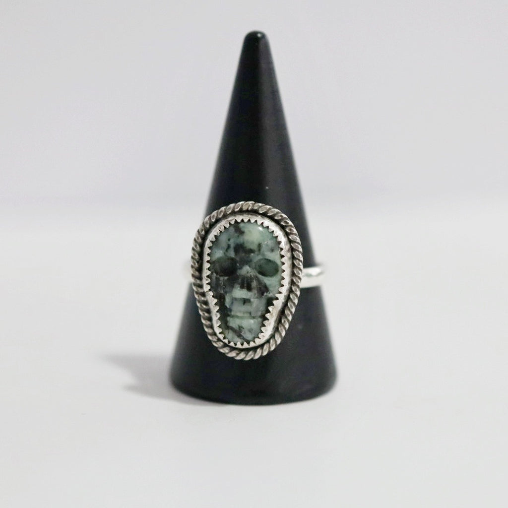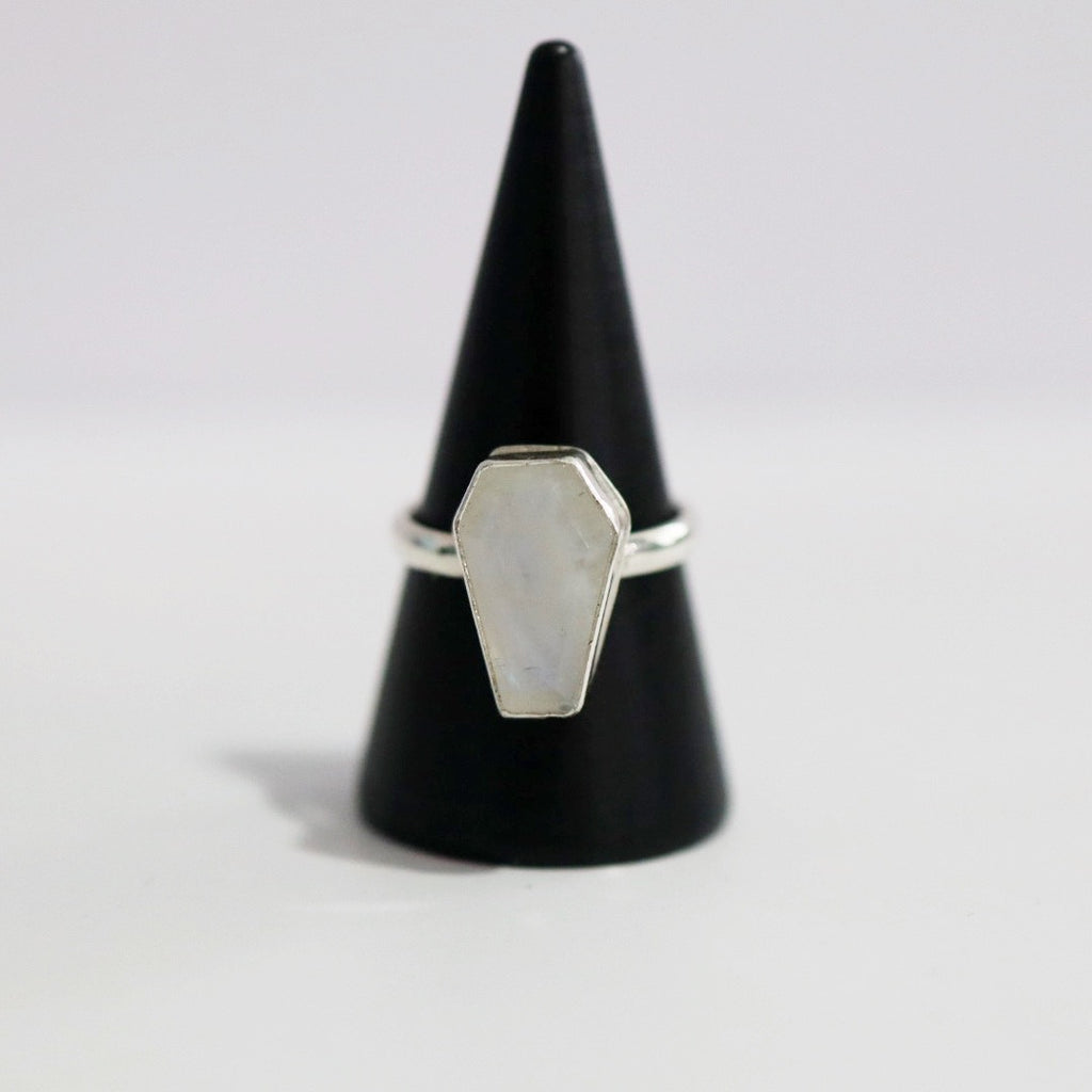 Coffin Gemstone Ring in Moss Agate and Sterling Silver / size 7.5 READY TO SHIP