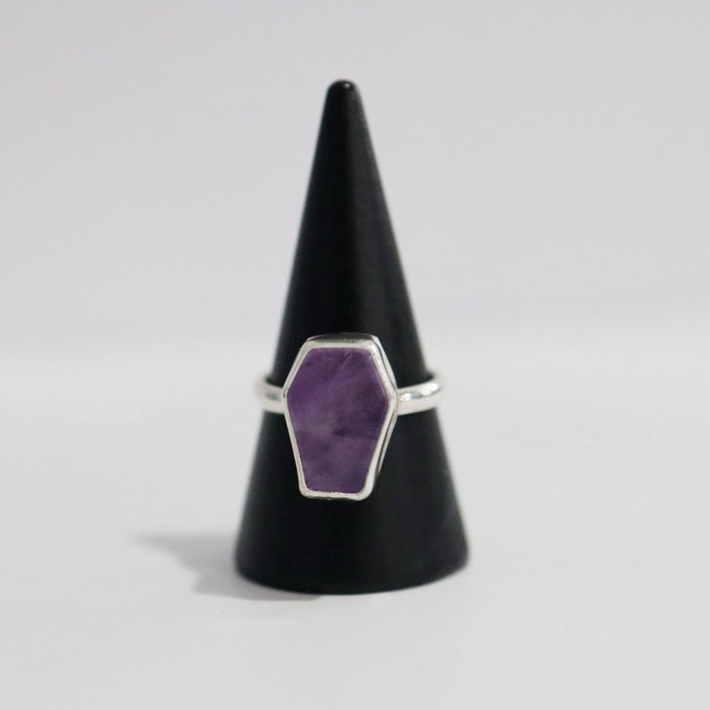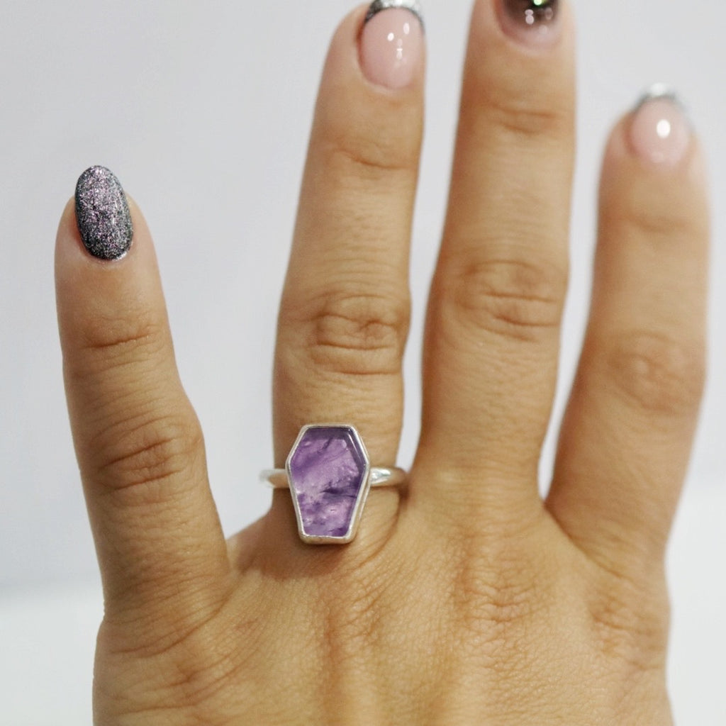 Gemstone Coffin Ring in Amethyst and Sterling Silver / size 7.5 READY TO SHIP