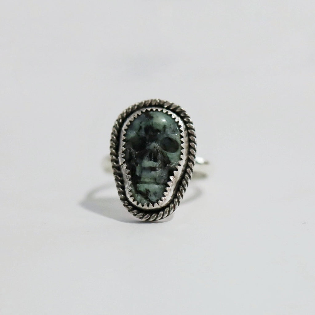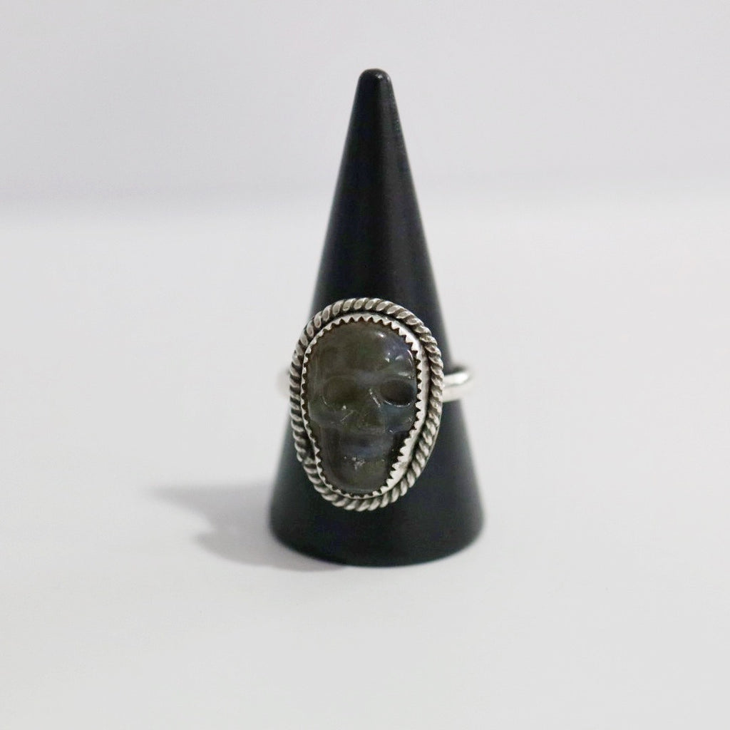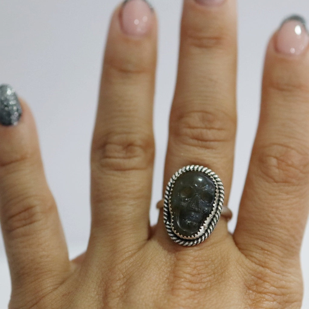 Gemstone Skull Ring in Sterling Silver and Labradorite / Size 9 Ready to Ship