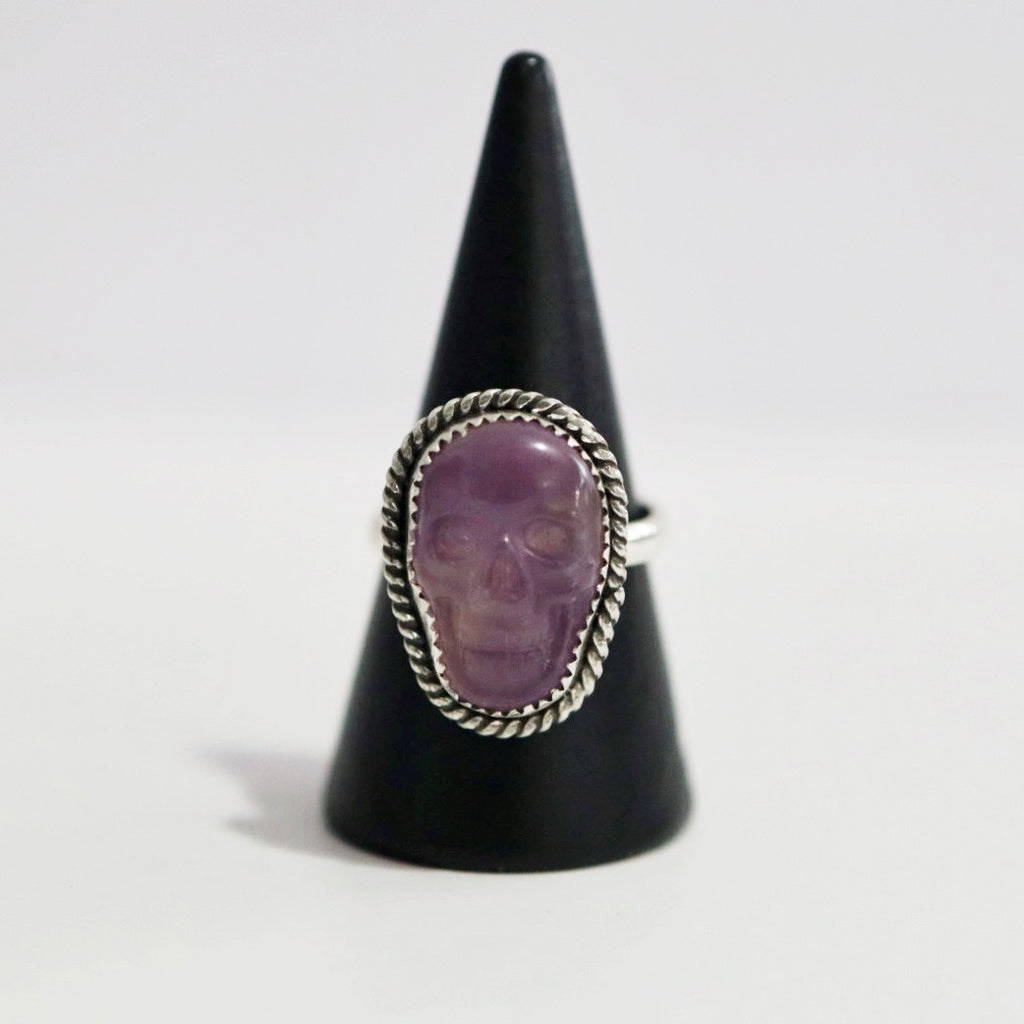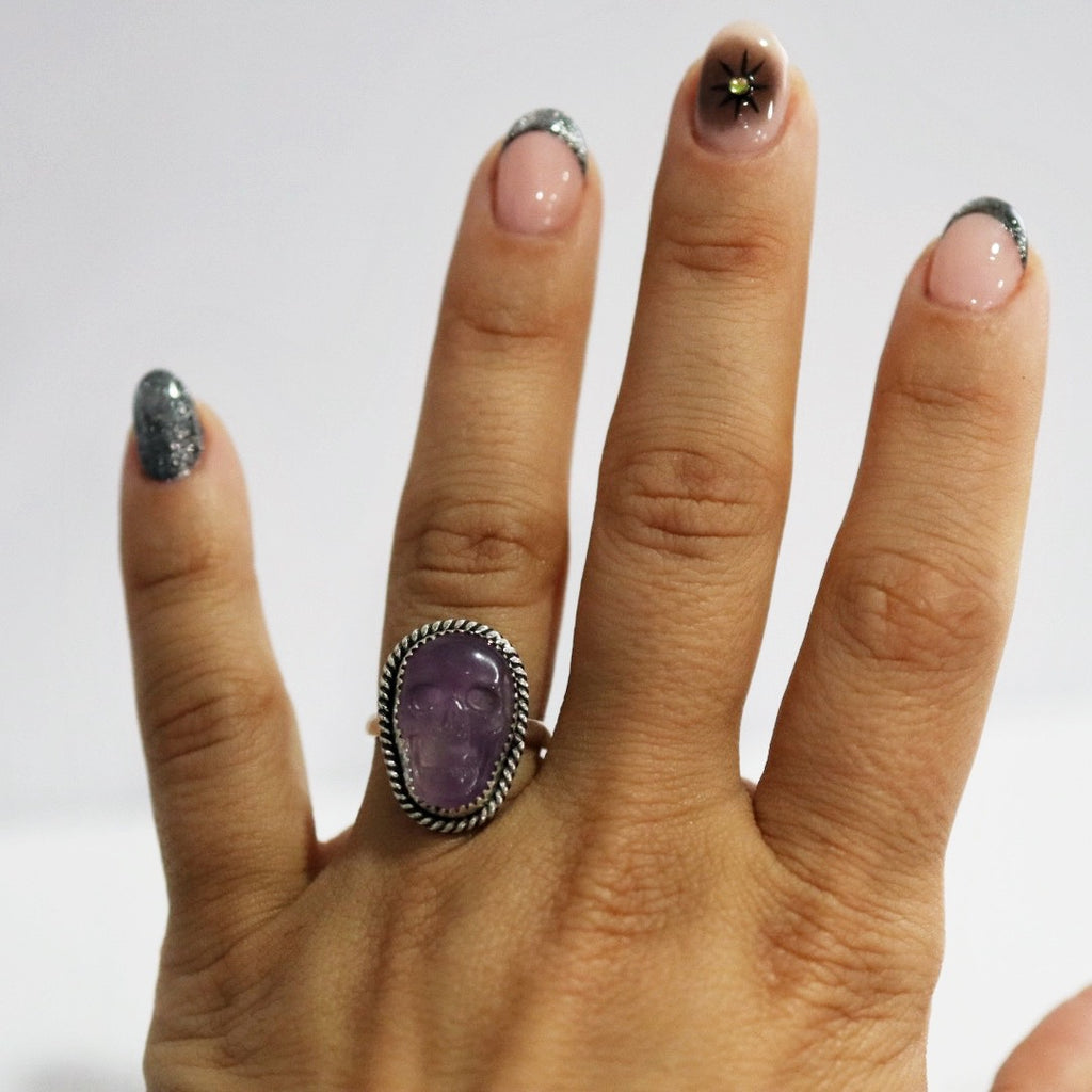 Gemstone Skull Ring in Sterling Silver and Amethyst / Size 6.5 Ready to Ship