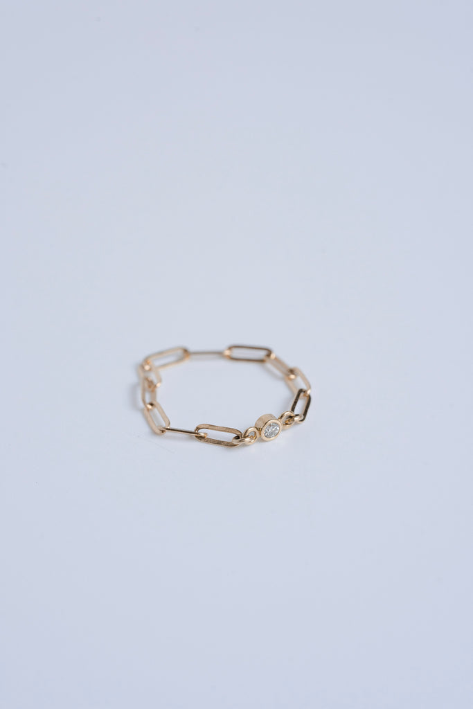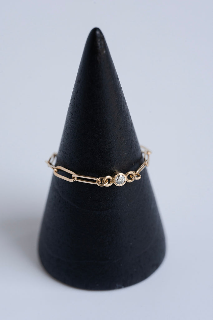 Diamond and Gold Paperclip Chain Ring in 14 Karat Yellow Gold