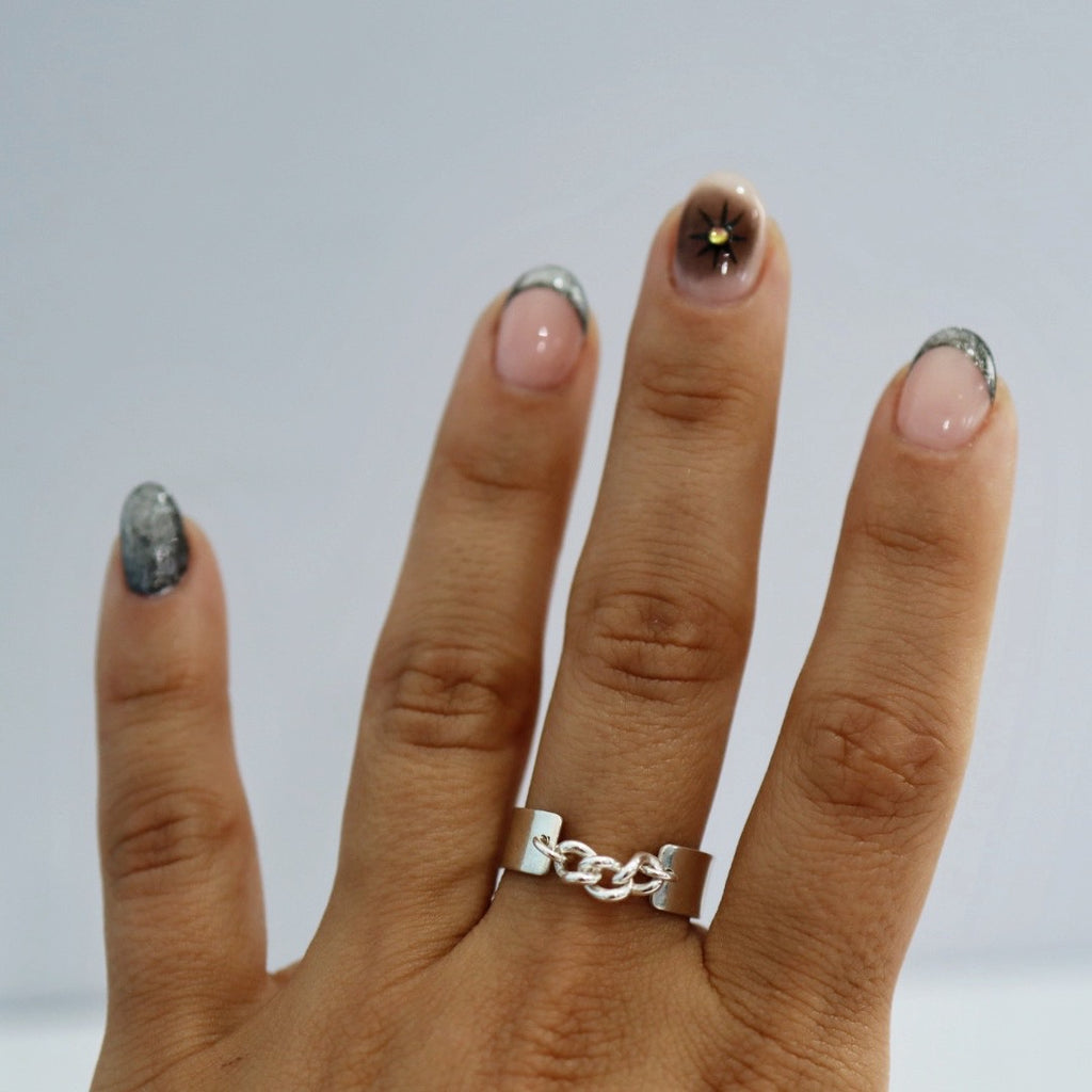 Figaro chain ring in 14 Karat Yellow Gold / Ready to Ship size 8.5 (can be made smaller)